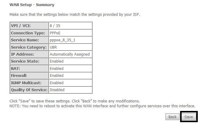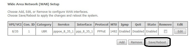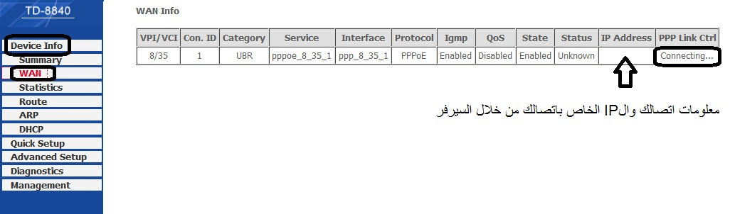 10- اعادة تشغيل الراوتر لحفظ الاعدادات لانشاء الاتصال بواسطة الاعدادات الجديدة: