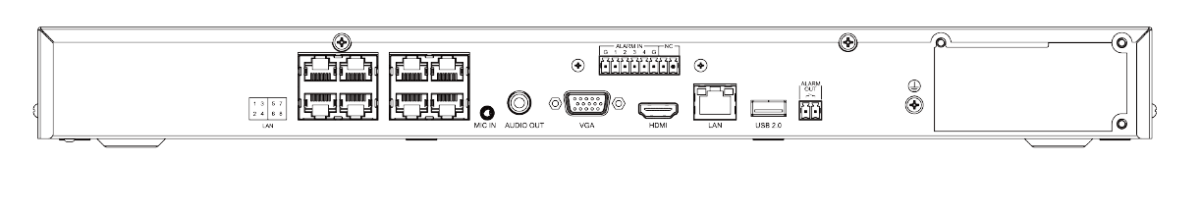 ·8MP(30fps)×2, 6MP(30fps)×2, 5MP(30fps)×3, 4MP(30fps)×4, 3MP(30fps)×5, 1080P(30fps)×8 playback decoding capacity